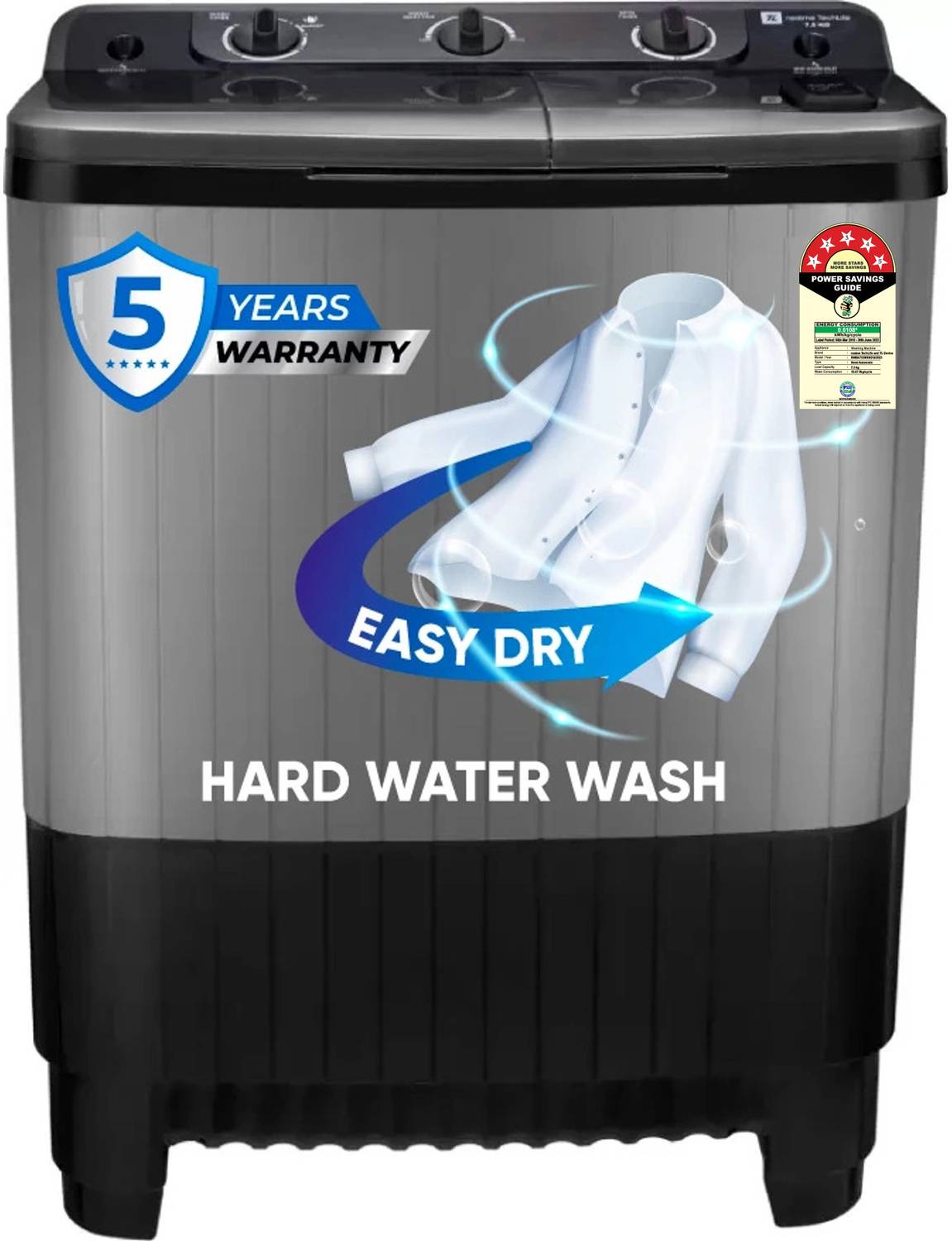 realme TechLife 7.5 kg 5 Star Rating Semi Automatic Top Load Washing Machine Black, Grey (RMSA755NNNDG)