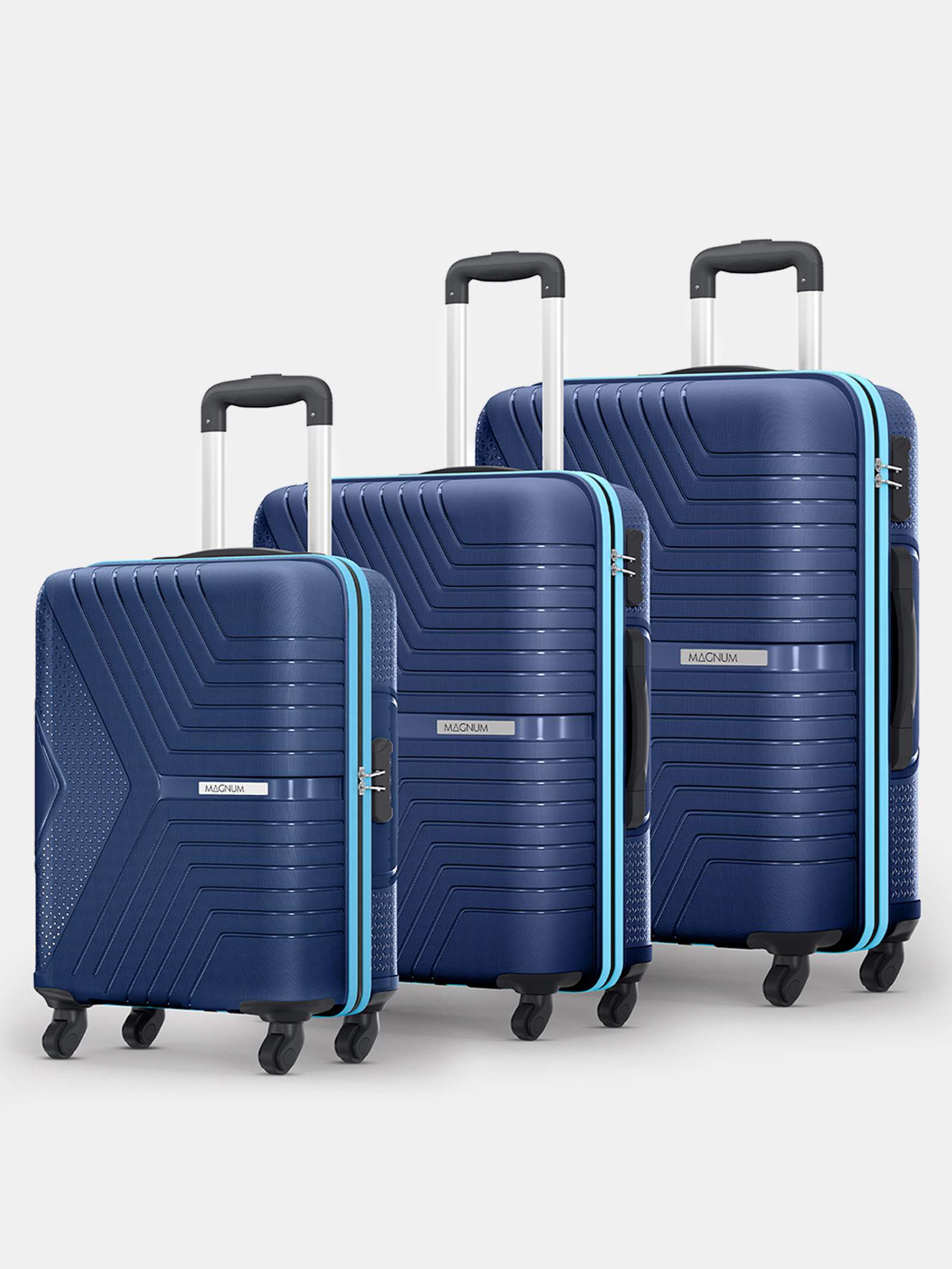 Hard Body Set of 3 Luggage 4 Wheels - Magnum Zeno (Small 55cm,Medium 66cm,Large 75cm) 4W - Blue