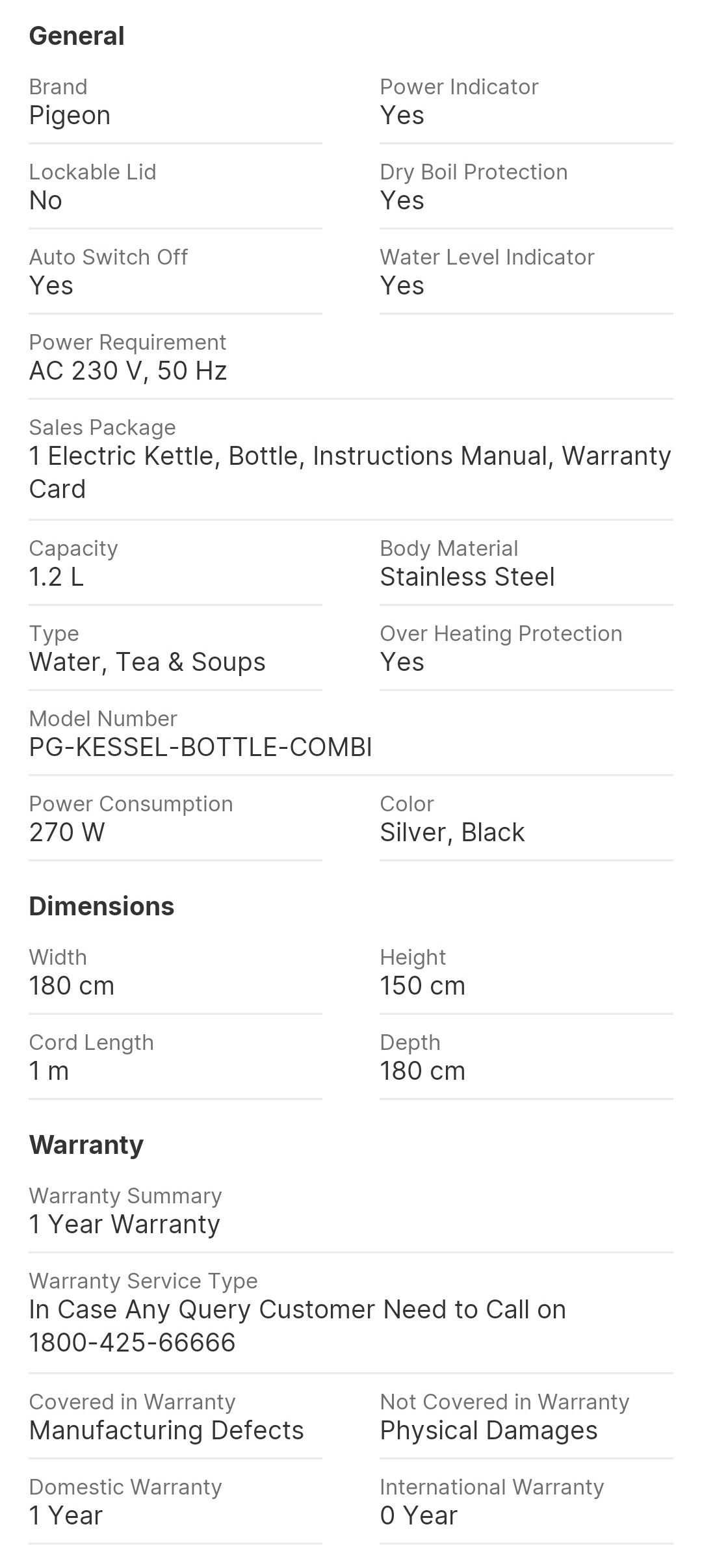 Pigeon PG-KESSEL-BOTTLE-COMBI Electric Kettle (1.2 L, Silver, Black)