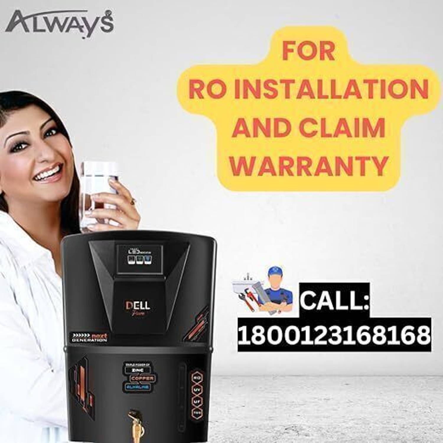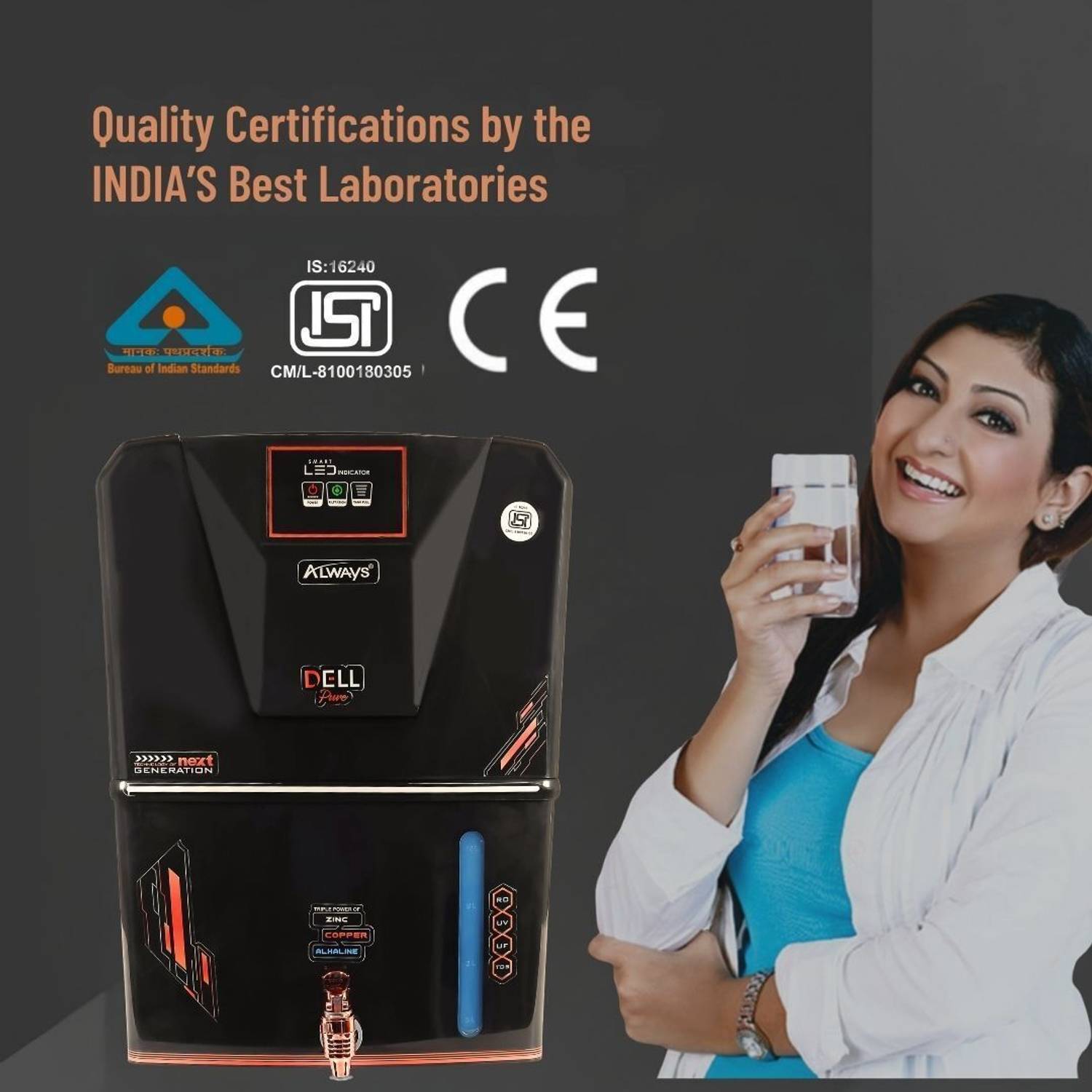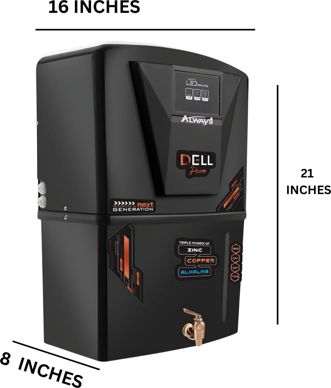 Always Dellpure Zinc Copper 9 Stage Purification Water purifier With LED INDICATOR 12 L RO + UV + UF + TDS + ALK + Copper Water Purifier (Black)