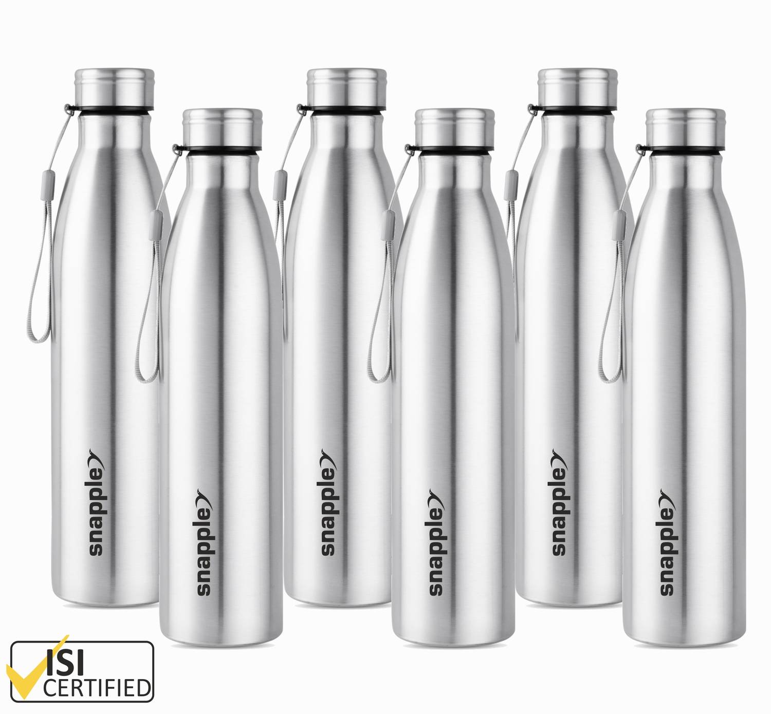 Snapple TAG Stainless Steel Water Bottle Single Wall ISI Certified 1000 ml Steel Bottle (Pack of 6, Silver)