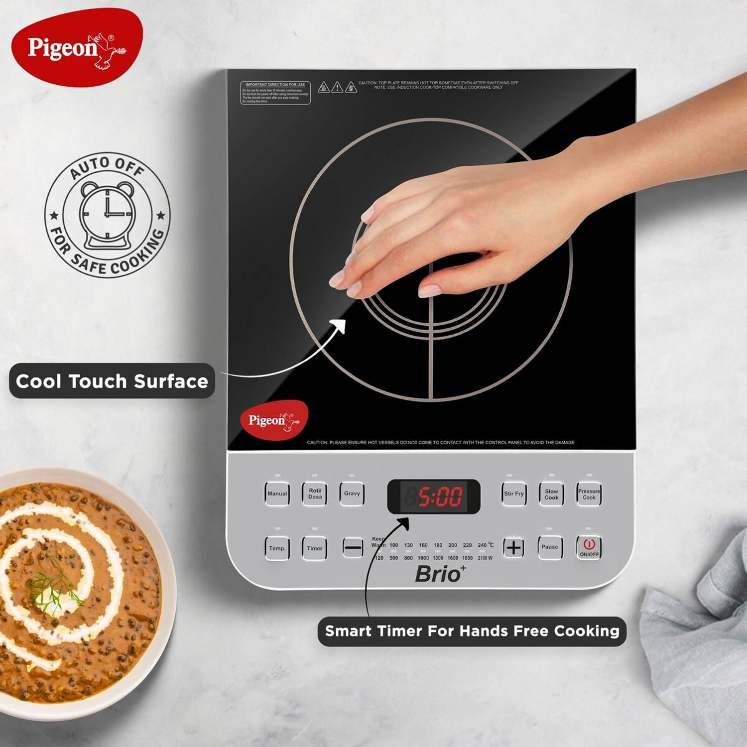 Pigeon 2100 W Induction Cooktop Push Button (Silver, Black, Brio)