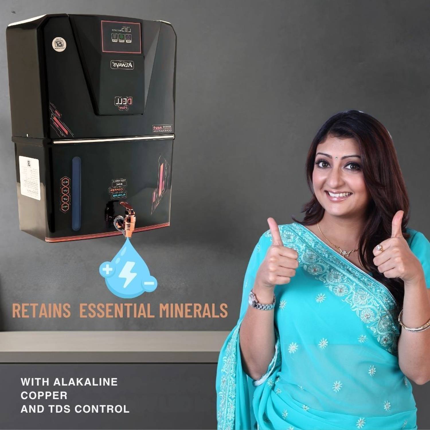 Always Dellpure Zinc Copper 9 Stage Purification Water purifier With LED INDICATOR 12 L RO + UV + UF + TDS + ALK + Copper Water Purifier (Black)