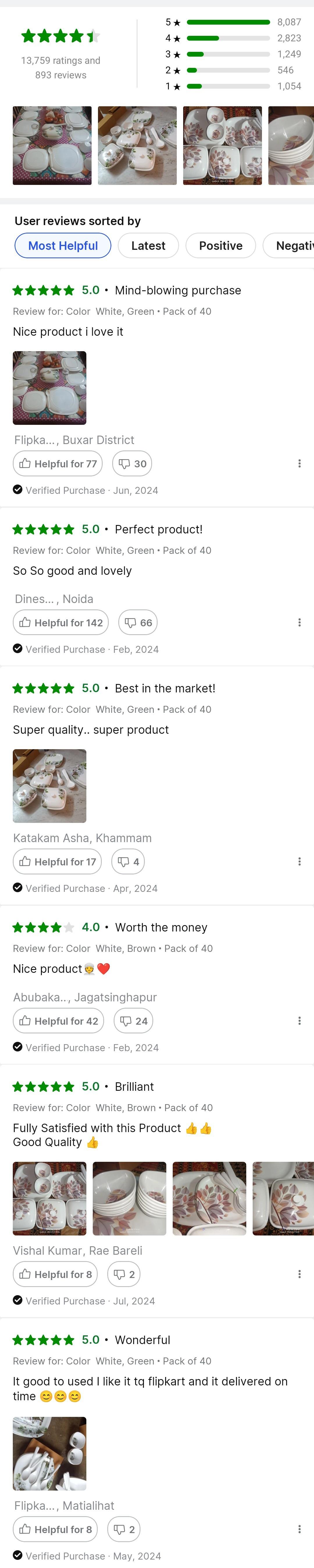 Flipkart SmartBuy Pack of 40 Melamin Emerald Bloom Melamine Dishwasher Safe|Stain Resistant Dinner Set (White, Green)